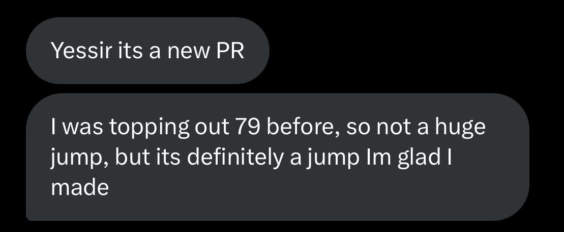 PR'd 87mph...