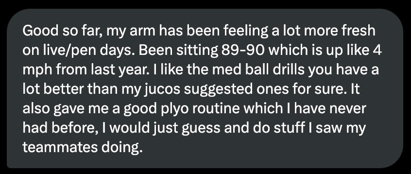 These results came from months of hard work working with us 1-1. This program gives you a snippet of what 9 weeks of that might look like. For 1-1 training, apply here: ThePitcherLab