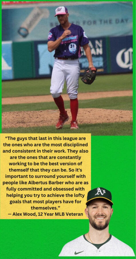 Hey everyone, Albertus Vaut Barber IV here.Here’s some things you should know about me.I was the worst athlete I knew growing up, and had to work my entire life to even have a chance.I will die for this game, and for those who love it.Anyone who respects this game, and truly puts their best foot forward, will receive everything I can offer.I dropped out of college to go train, and eventually work as a janitor at Driveline.Working in this role gave me the ability to learn under all of the great minds.I’ve pulled down over 100, sat upper 90s, played up to AA, and have survived 9+ years of being injured/adversity.This game gave me nothing easy, and I will continue to bite and scratch for every moment.Training to me is a way to hold me accountable, and learn how to convey certain messages to my athletes.I personally believe that every coach should also be playing/practicing the sport that they coach.I look forward to entering the trenches with all of you, and accomplishing more than you could ever imagine.You might not ever realize how good you could possibly be, but WE WILL.